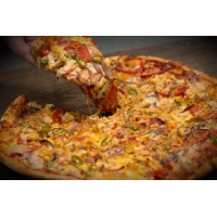 sos pizza, mozzarella, piept de pui, şuncă, prosciutto crudo, ciuperci, porumb, ardei gras... Detalii