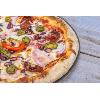 sos roșii, mozzarella, salam țărănesc, mușchi file, cârnăciori, ciuperci, ceapă, măsline f... Detalii
